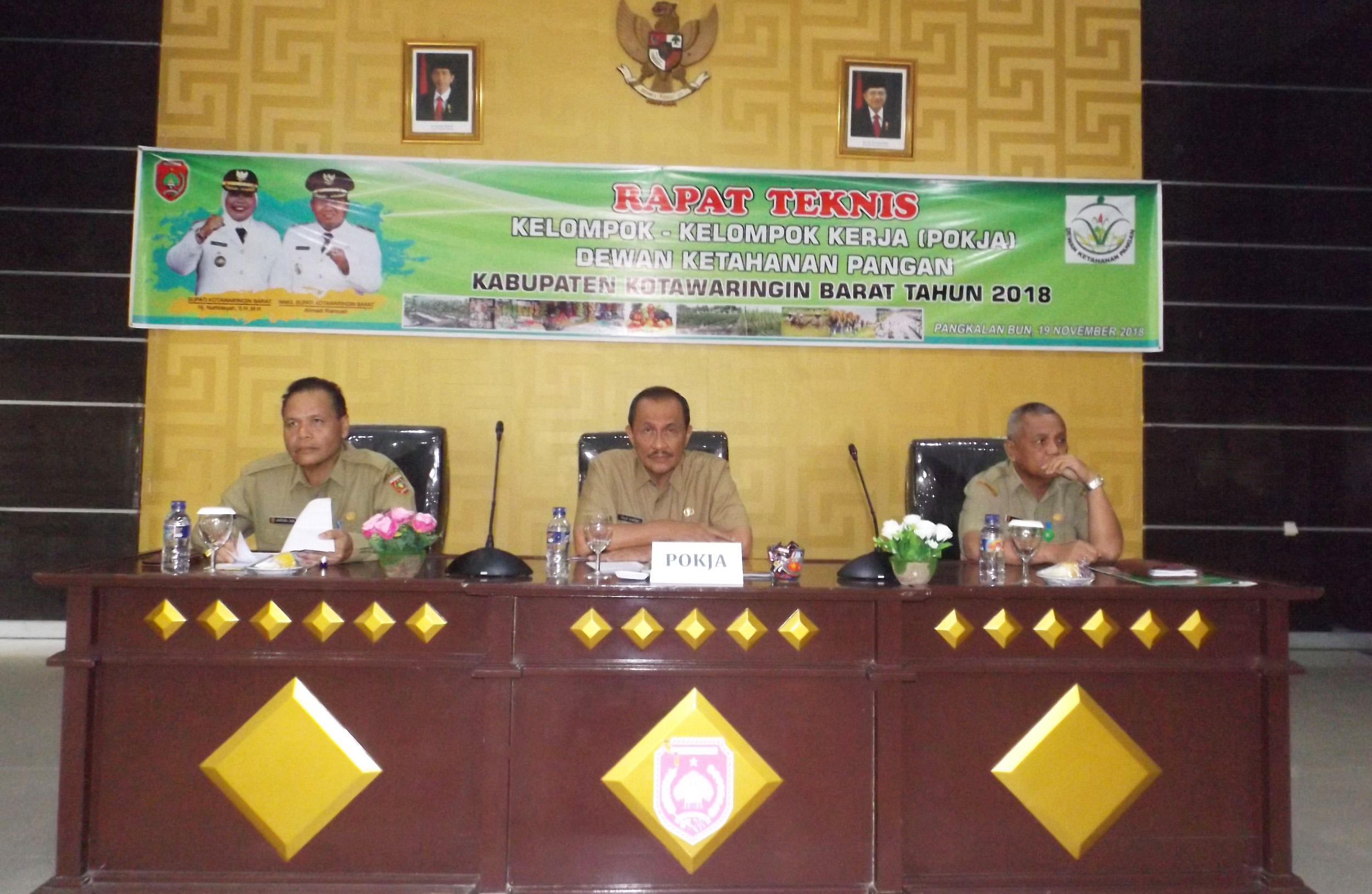 MMCKalteng - Dinas Ketahanan Pangan (DKP) Kabupaten Kotawaringin Barat (Kobar) selaku sekretariat Dewan Ketahanan Pangan Kobar, Senin (19/11) menggelar rapat teknis kelompok kerja (pokja) di Aula Bappeda Kobar.