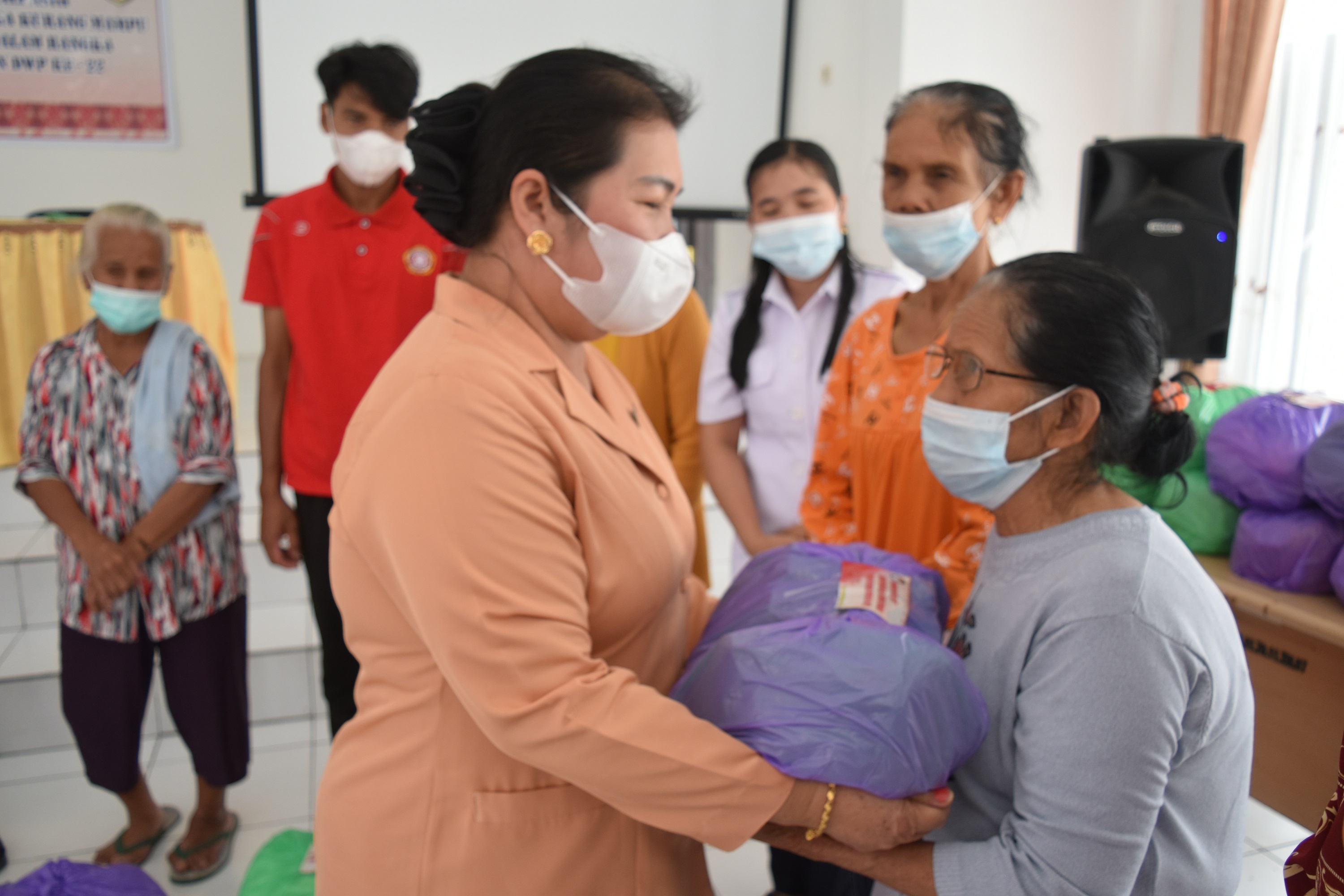 MMCKalteng - Gunung Mas – Dharma Wanita Persatuan (DWP) Kabupaten Gunung Mas memberikan tali asih untuk janda pensiunan ASN, keluarga kurang mampu di wilayah Kabupaten Gunung Mas dalam rangka memperingati HUT DWP ke-22 Tahun 2021 serta menyambut Hari Natal dan Tahun Baru.