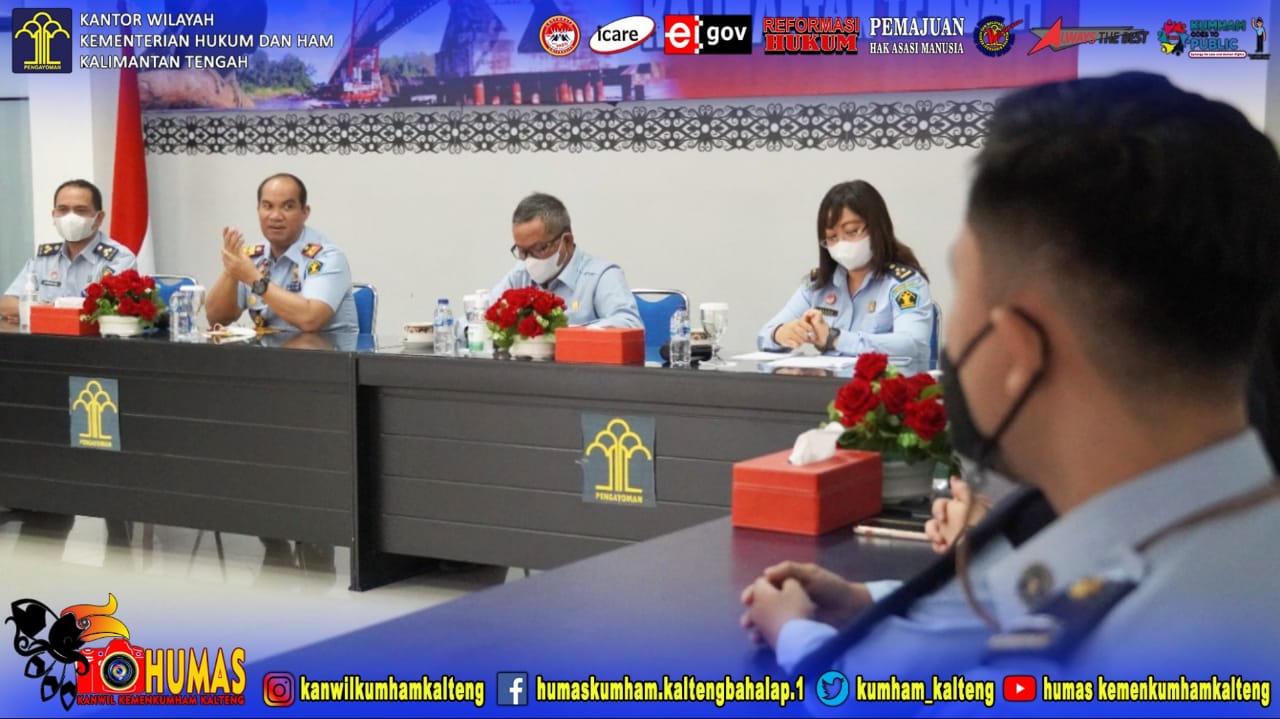 MMCKalteng - Palangka Raya – Di awal Tahun 2022 Kepala Kantor Wilayah Ilham Djaya mengajak seluruh protokol dan humas Kantor Wilayah Kementerian Hukum dan HAM Kalimantan Tengah untuk Coffee Morning bersama di Aula Kahayan yang dihadiri Kepala Divisi Administrasi Ikmal Idrus, Kepala Bagian Program dan Humas Diana Soekowati, dan Kepala Bagian Umum Mahrijuni serta Kepala Sub Bagian Humas, RB, dan TI Laila Rahmawati, Senin (3/1/2022). Dalam forum tersebut, Ilham Djaya memberikan penguatan dan evaluasi kembali kinerja dari Protokol dan Humas terhadap Kantor Wilayah Kementerian Hukum dan HAM Kalimantan Tengah.