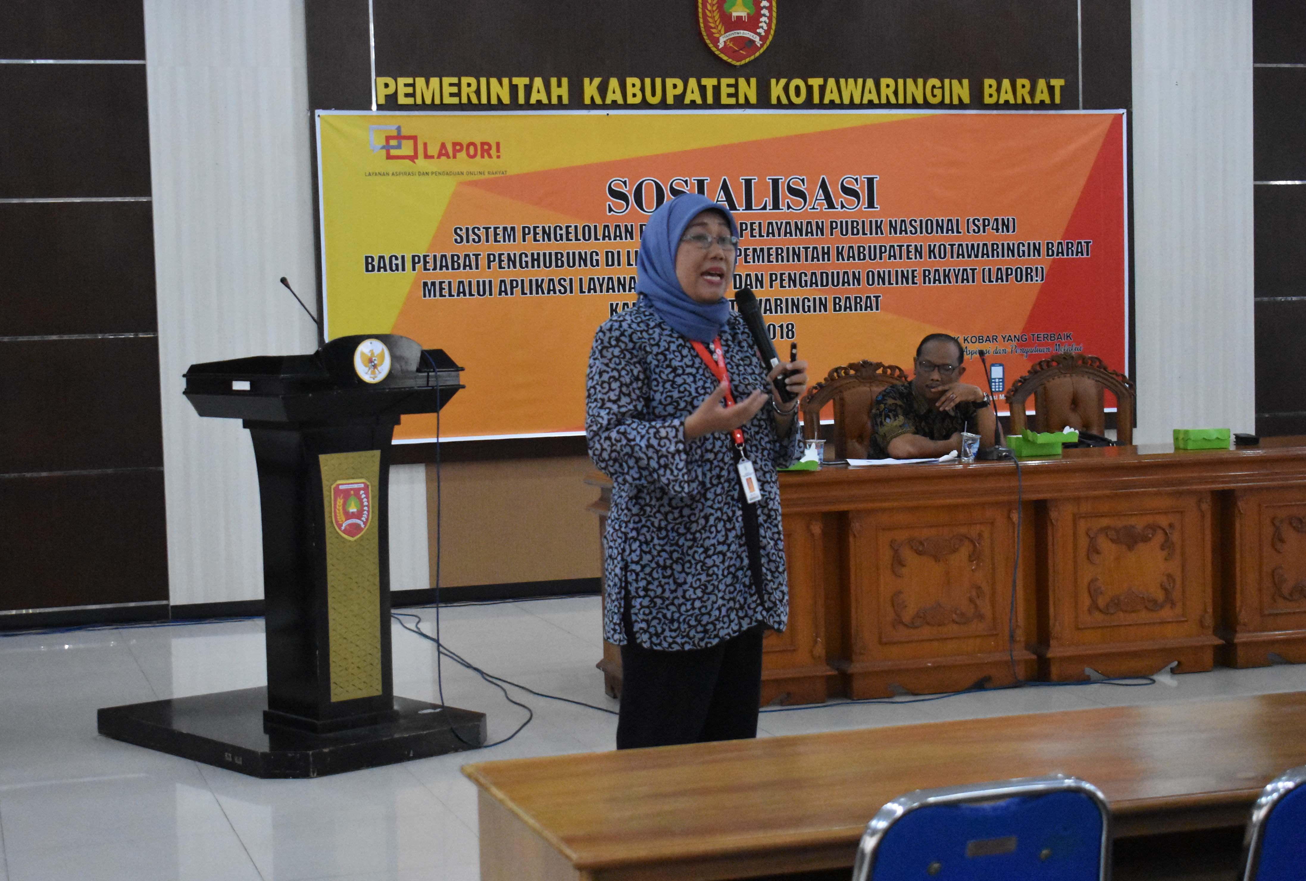 MMC Kalteng - Pemerintah Kabupaten (Pemkab) Kotawaringin Barat (Kobar) melalui Bagian Organisasi Sekretariat Daerah (Setda) Kobar, Jum’at (30/11) menggelar sosialisasi Layanan Aspirasi dan Pengaduan Online Rakyat, Sistem Pengelolaan Pengaduan Pelayanan Publik Nasional (LAPOR!-SP4N) di Aula Kantor Bupati Kobar.