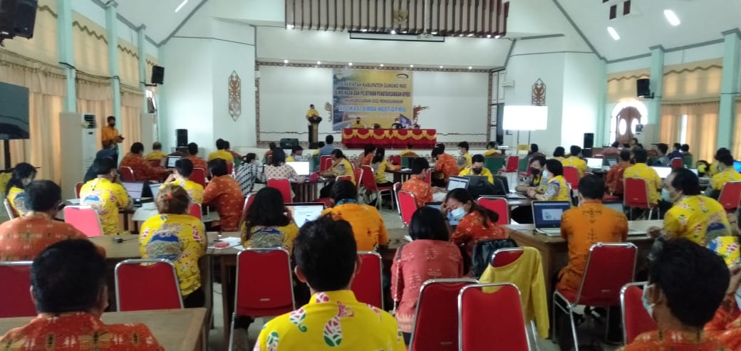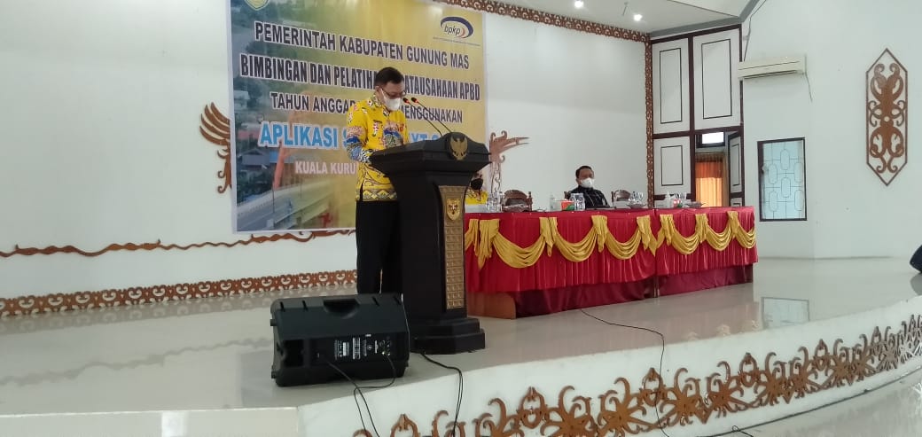 MMCKalteng - Gunung Mas – Sekretaris Daerah Kabupaten Gunung Mas (Sekda Gumas) Yansiterson membuka kegiatan bimbingan dan pelatihan penatausahaan APBD tahun anggaran 2022 menggunakan aplikasi simda Next-G atau Financial Management Information System (FMIS) di GPU Damang Batu, Kamis (27/1/2022).