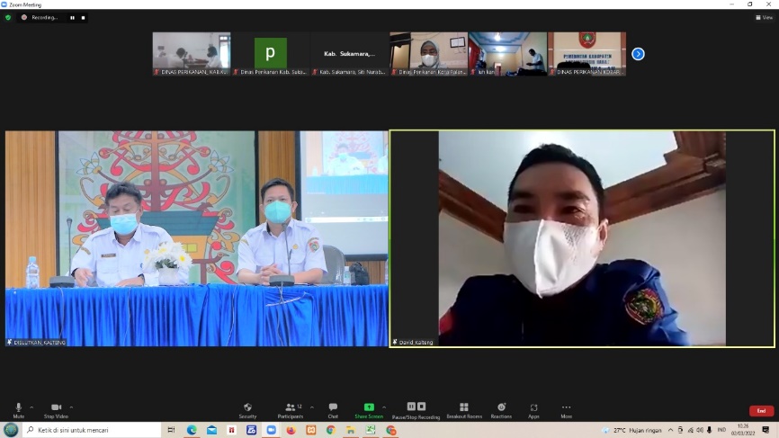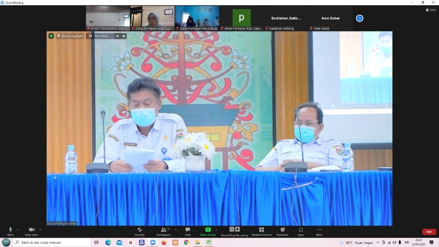 Gubernur Kalteng yakin bahwa pembangunan Kampung Perikanan Budidaya ini dapat memberikan dampak pada peningkatan kesejahteraan masyarakat Kalteng. Hal ini disampaikan oleh Kepala Bidang Budidaya, Pengolahan dan Pemasaran (Kabid Budlahsar) H. Husnudin mewakili Kepala Dinas Kelautan dan Perikanan (Kadislutkan) Prov. Kalteng saat mengikuti Rapat Koordinasi Percepatan Kampung Perikanan Budidaya melalui aplikasi zoom meeting, di aula Dislutkan Prov. Kalteng, Rabu (2/3/2022).