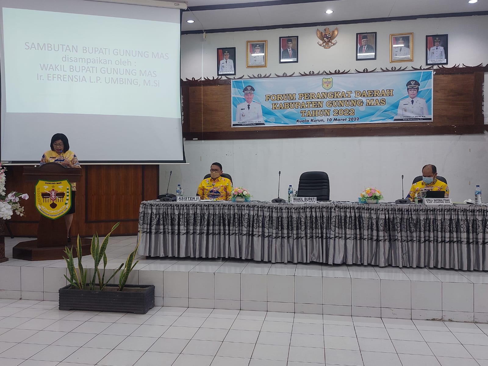 MMCKalteng - Gunung Mas – Wakil Bupati Gunung Mas (Gumas) Efrensia L.P. Umbing didampingi Asisten II Setda Gumas Richard dan Kepala Bappedalitbang Yantrio Aulia mengikuti Forum Perangkat Daerah Kabupaten Gunung Mas Tahun 2022.