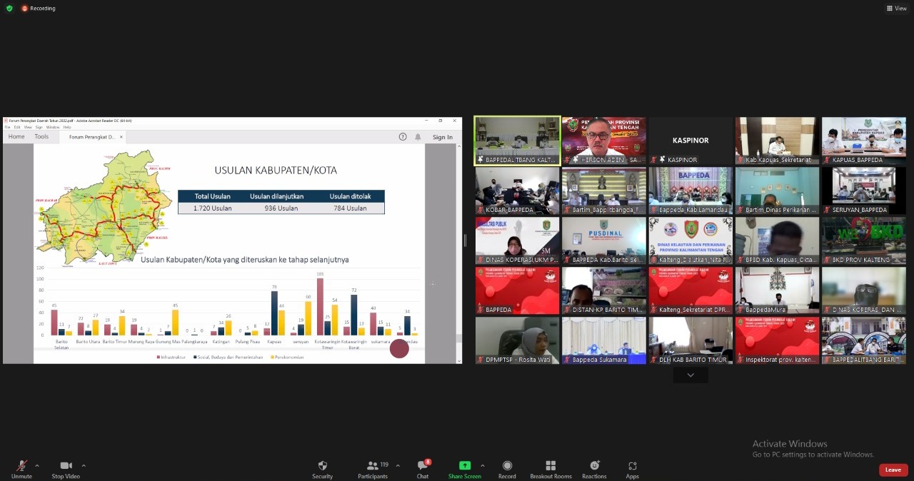 Herson B. Aden saat membacakan sambutan tertulis Pj. Sekretaris Daerah Prov. Kalteng H. Nuryakin menyampaikan pertemuan ini merupakan kesempatan yang sangat baik, untuk bersama-sama melakukan pembahasan dan sinkronisasi usulan program kegiatan pembangunan di Prov. Kalteng Tahun 2023. Hasil Forum Perangkat Daerah ini selanjutnya akan digunakan untuk penyempurnaan rancangan Renja Perangkat Daerah provinsi tahun 2023 dan penyempurnaan rancangan awal RKPD Provinsi menjadi rancangan RKPD Provinsi, sebagai bahan klarifikasi dalam Musrenbang Provinsi yang direncanakan pada tanggal 7 April 2021.