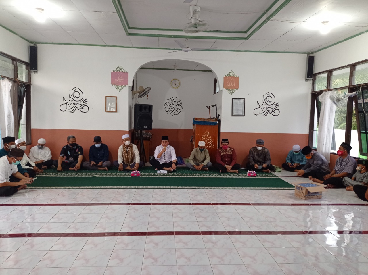 Turut hadir Kadisperkimtan Prov. Kalteng Erlin Hardi, perwakilan Dinas Perkebunan Prov. Kalteng Agung Catur Prabowo, Plt. Kadis KUMKM Norhani, Kepala UPT KPH Kahayan Hilir Unit XXXI Dishut Prov. Kalteng Joko Listyanto, serta pengurus RKM Masjid Al`Mujahidin Akbar, Edy, dan Yusuf. (Rkh/Foto: Tim Safari Ramadan)