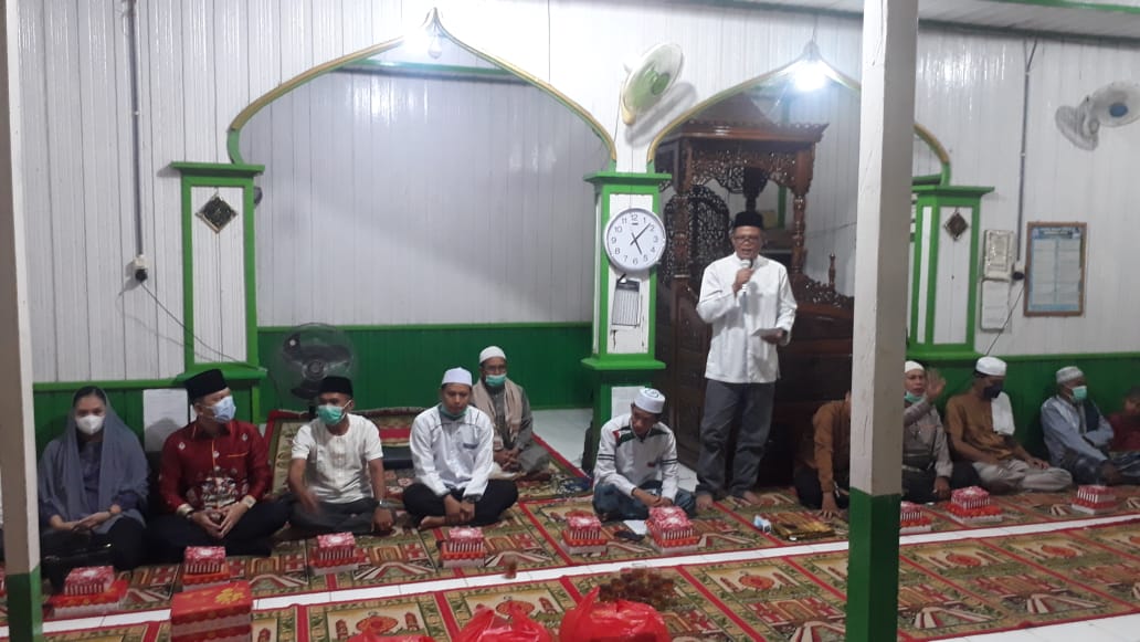 Pada kesempatan itu juga dilakukan penyerahan secara simbolis tali asih dari Gubernur Kalteng berupa sarung sebanyak 50 pcs kepada takmir Masjid Ar Rahman.