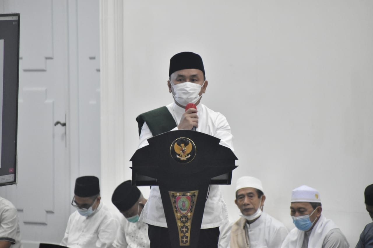 Pada kesempatan tersebut, Gubernur menyampaikan beberapa hal. Pertama, pada Tahun 2022 ini, sebagaimana diumumkan oleh Menteri Agama akan dilaksanakan Penyelenggaraan Ibadah Haji yang mana selama 2 (dua) tahun tertunda akibat Covid-19, oleh karena itu bagi yang akan berangkat Haji agar mempersiapkan diri sebaik-baiknya begitu juga persyaratan kesehatan harus dipenuhi khususnya telah melaksanakan Vaksin Booster.