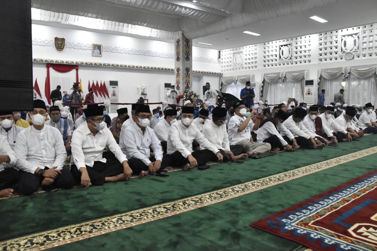MMCKalteng – Palangka Raya – Gubernur Kalimantan Tengah (Kalteng) H. Sugianto Sabran Safari Ramadan dengan Bupati/Walikota, Forkopimda, Kepala Perangkat Daerah, Pimpinan Ormas Islam, Imam dan Kaum Masjid, Anak Yatim Piatu, Fakir Miskin di Provinsi dan Kabupaten/Kota se-Kalteng serta Para Alim Ulama, Tokoh Masyarakat dan Insan Pers. Safari Ramadan digelar secara hybrid, terpusat di Istana Isen Mulang Palangka Raya, Kamis (28/4/2022).