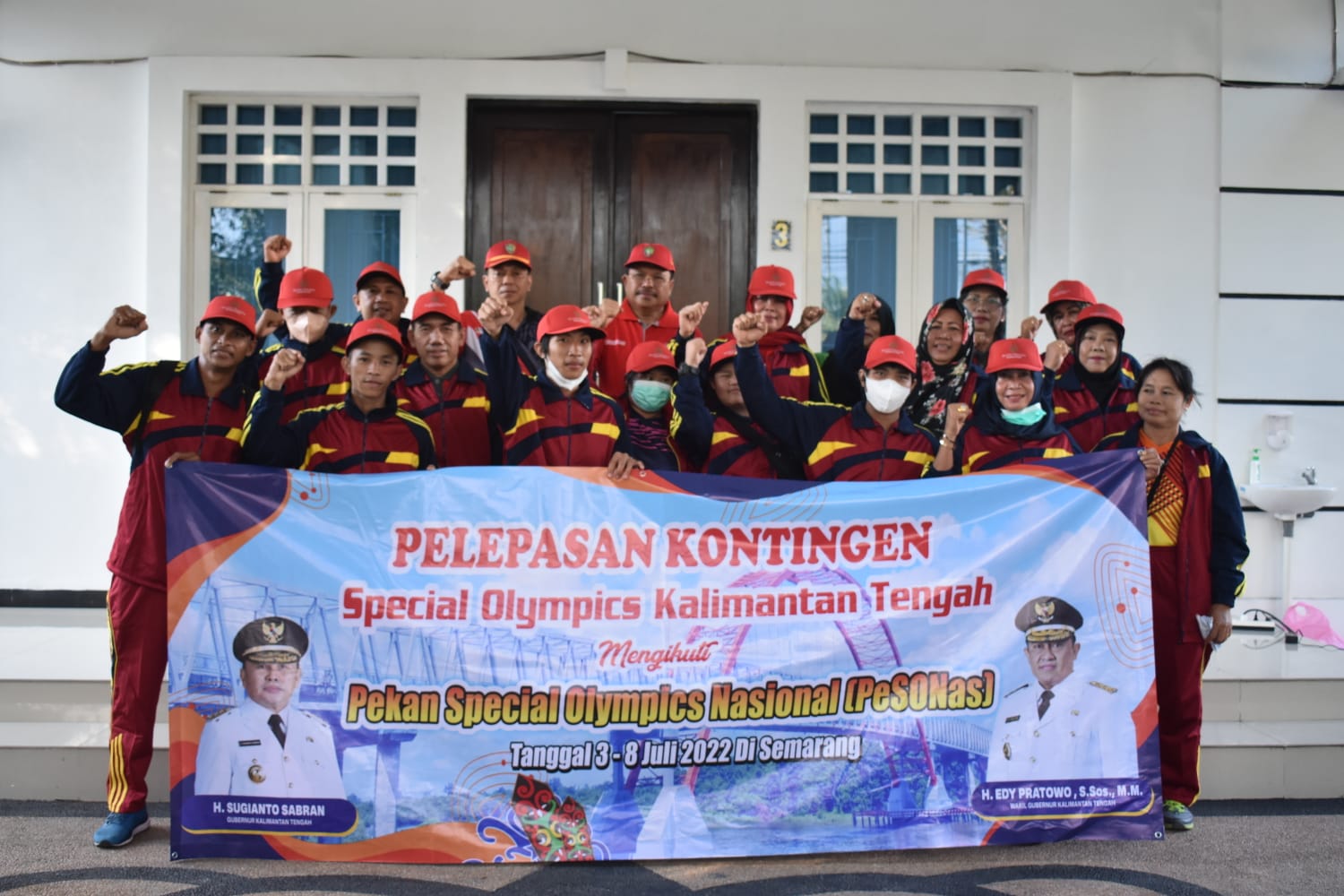 MMCKalteng – Palangka Raya – Sekretaris Daerah Provinsi Kalimantan Tengah (Prov. Kalteng) H. Nuryakin melepas secara resmi keberangkatan Kontingen Pekan Special Olympic Nasional (Pesonas) Kalteng. Pelepasan berlangsung di Rumah Jabatan Sekda Prov. Kalteng, Sabtu (2/7/2022).