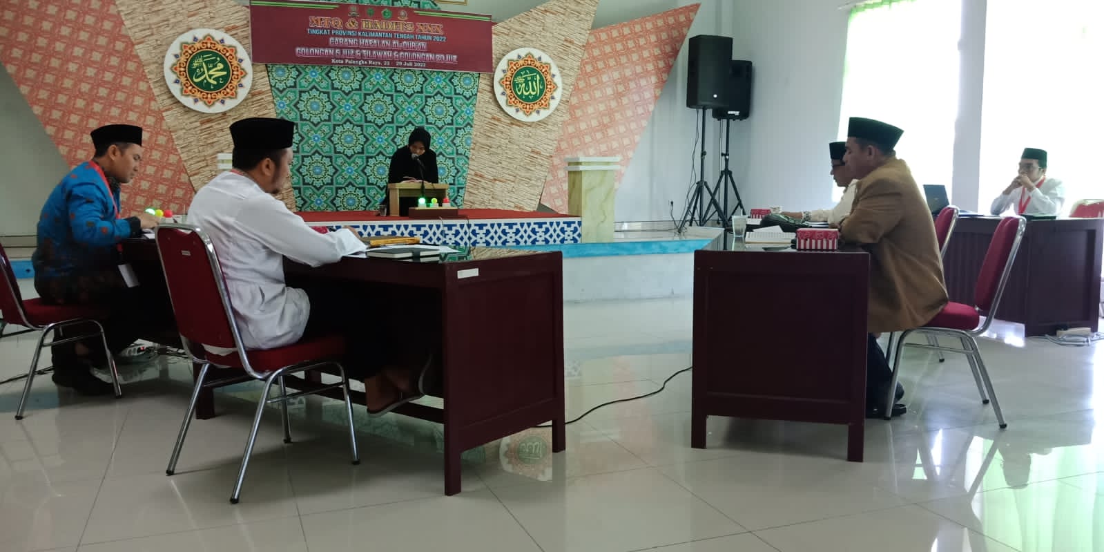 MMCKalteng - Palangka Raya - Terdengar lantunan ayat-ayat suci Al-Quran bergema dari lantai dua Aula Pusat Layanan Usaha Terpadu Koperasi dan Usaha Mikro, Kecil, dan Menengah (PLUT KUMKM) Jalan MH. Thamrin Palangka Raya. Pasalanya, di lokasi ini sedang berlangsung Musabaqoh Tilawatil Quran hari pertama Cabang Hafalan Al-Quran Golongan 5 Juz + Tilawah dan Golongan 20 Juz, Minggu (24/07/2022).