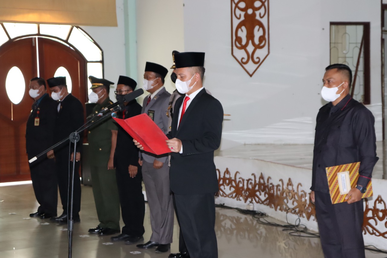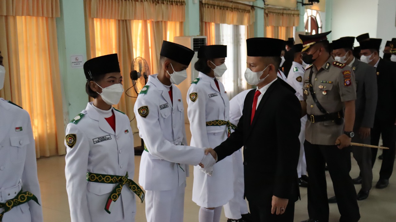 MMCKalteng - Kuala Kurun - Bupati Gunung Mas (Gumas) Jaya Samaya Monong mengukuhkan 45 Pasukan Pengibar Bendera Pusaka (Paskibraka) meliputi 30 orang putra dan 15 putri yang dilaksanakan di Aula GPU Damang Batu Kuala Kurun, Selasa (16/8/2022).
