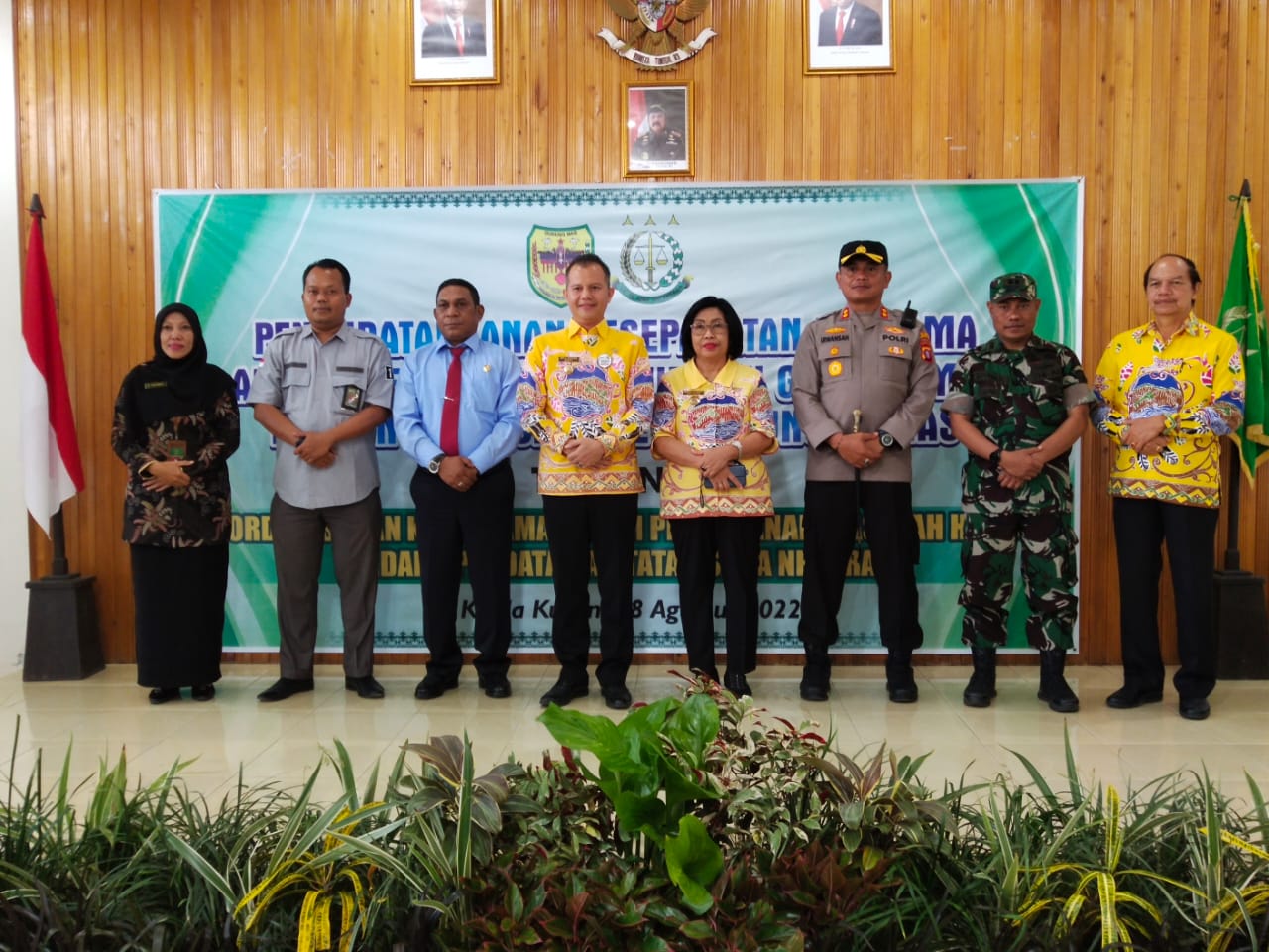 Turut Hadir Wakil Bupati Gumas Efrensia L.P Umbing, Kapolres Gumas Irwansah, Perwira Penghubung Kodim 1016 PLK Idham Khalid, Ketua Pengadilan Negeri Bukti Firmansyah, Wakil Ketua Pengadilan Agama, Asisten I Setda Lurand, Kepala Dinas Kesehatan Arnold, Kepala Dinas PU Baryen, Sekretaris Dinas Pendidikan Rosalia, serta Kabag. hukum Erdisito. (Han KT/foto : Han KT/edt:rkh)
