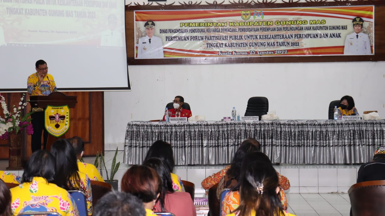 MMCKalteng – Kuala kurun – Pemerintah Kabupaten Gunung Mas (Gumas) melalui Dinas Pengendalian Penduduk, Keluarga Berencana, Pemberdayaan Perempuan dan Perlindungan Anak (DP3BP3A) Gumas menggelar Kegiatan Pertemuan Forum Partisipasi Publik untuk Kesejahteraan Perempuan dan Anak (PUSPA) tingkat Kabupaten Gunung Mas tahun 2022, yang dilaksanakan di Aula Bappedalitbang Gumas, Kamis (25/8/2022) pagi.