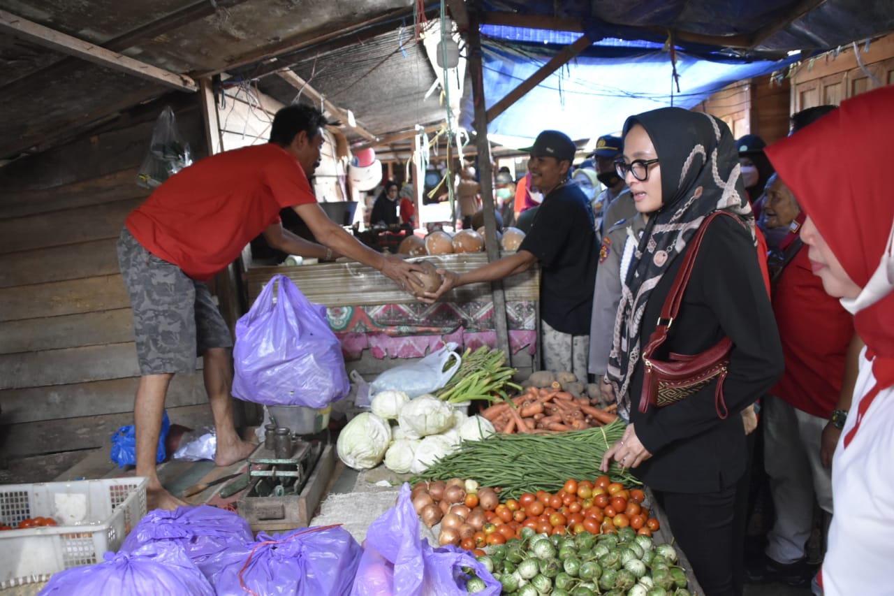 Di hari kedua kunker ini Ketua TP-PKK Prov. Kalteng Ivo Sugianto Sabran beserta rombongan meninjau Pasar Beringin Buntok Kabupaten Barito Selatan, Sabtu (3/9/2022).