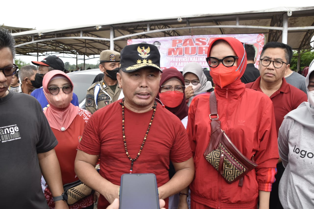 Usai Senam Bersama, Gubernur Kalteng Tinjau Pasar Murah di Taman Iring Witu
