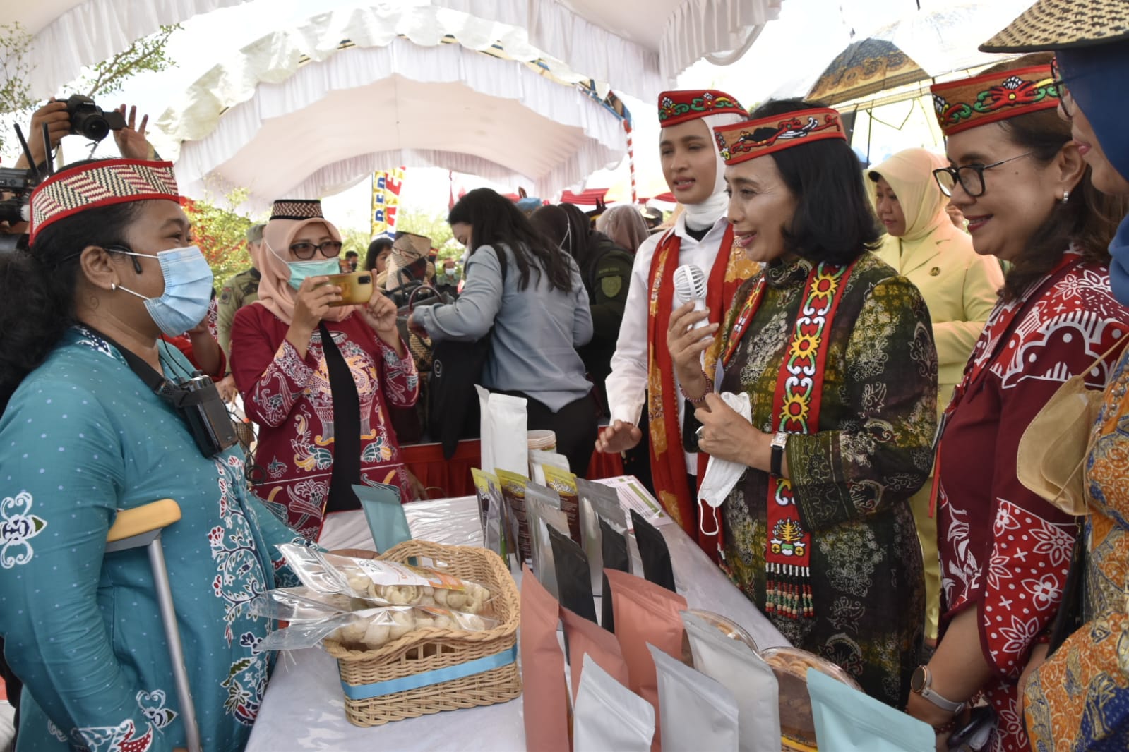 Kunjungan ke Taman Edukasi dalam rangka meninjau Dapur Sehat Atasi Stunting (DAHSAT), Hasil kerajinan dari UMKM Perempuan dan UMKM Perempuan Disabilitas, Posyandu balita, Layanan KB dan Tanaman Obat Keluarga (TOGA).