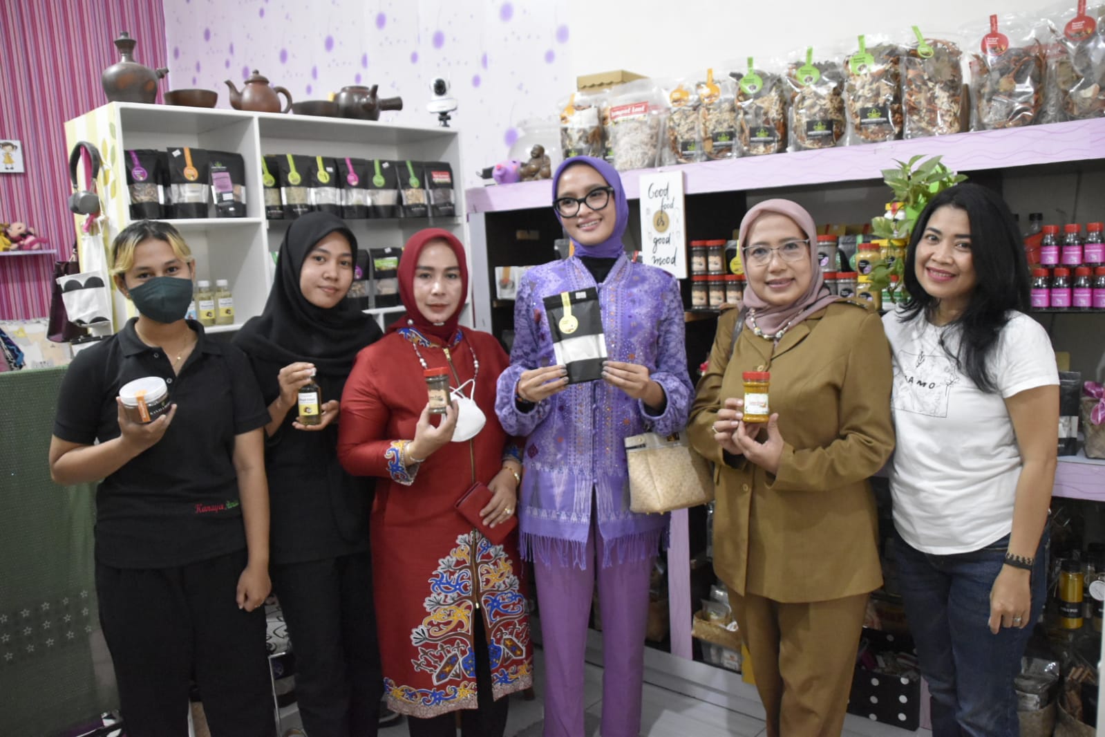 MMCKalteng - Pangkalan Bun - Ketua TP PKK Prov. Kalteng Ivo Sugianto Sabran mengunjungi Usaha Mikro Kecil Menengah (UMKM) Jamu Kanaya Herbal yang berlokasi di Jalan Sultan Imanudin Pangkalan Bun Kabupaten Kotawaringin Barat (Kobar), Selasa (27/9/2022).