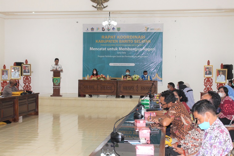 Hal ini diungkapkan oleh Asisten I Setda Kab. Barito Selatan (Barsel) Yoga Prasetyanto Utomo pada saat membuka Rapat Koordinasi (Rakor) Regsosek Kab. Barsel yang dilaksanakan di aula Bappeda Kab. Barsel, Kamis (29/9/2022).