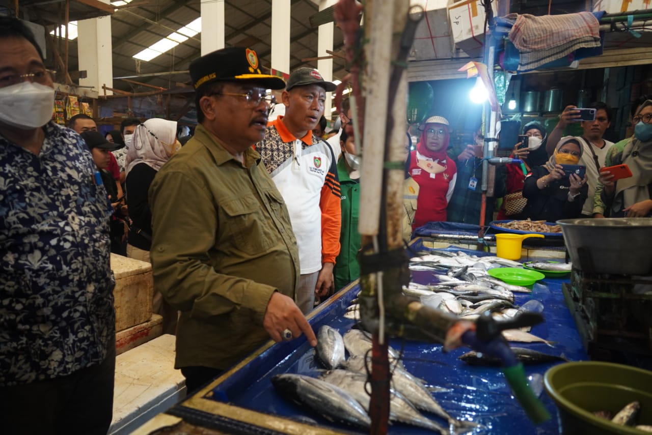 MMCKalteng - Palangka Raya - Sebagai upaya menekan angka inflasi daerah, Sekretaris Daerah (Sekda) Prov. Kalteng H. Nuryakin bersama Tim Pengendali Inflasi Daerah (TPID) dan Tim Satgas Pangan Prov. Kalteng melakukan sidak pasar untuk memantau harga pangan di Pasar Besar Jalan A. Yani Palangka Raya dan Pasar Kahayan, Minggu (2/10/2022).
