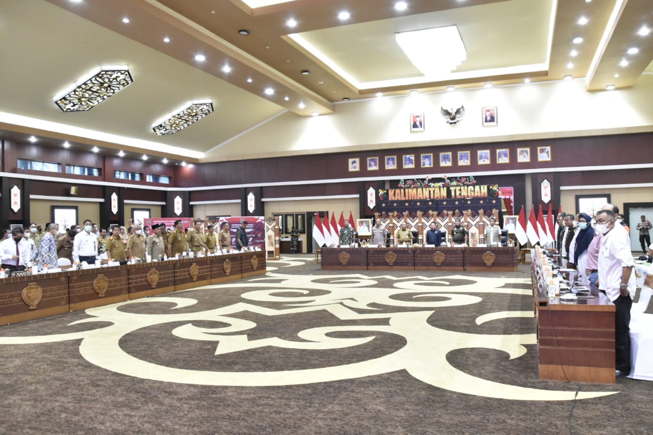 Turut hadir Deputi Bidang Penanganan Darurat BNPB Mayjen TNI Fajar Setyawan, Ketua DPRD Wiyatno, Sekretaris Daerah H. Nuryakin, Kapolda Kalteng Nanang Avianto, Danrem 102/Pjg Brigjen TNI Yudianto Putrajaya, Kajati Kalteng Pathor Rahman, Kepala OJK Kalteng Otto Fitriandy, Plt. Kepala Kantor Perwakilan BI Magfur, Asisten Bidang Perekonomian dan Pembangunan Leonard S. Ampung, serta Kepala Perangkat Daerah Prov. Kalteng terkait. (Rkh/Foto:Asep)