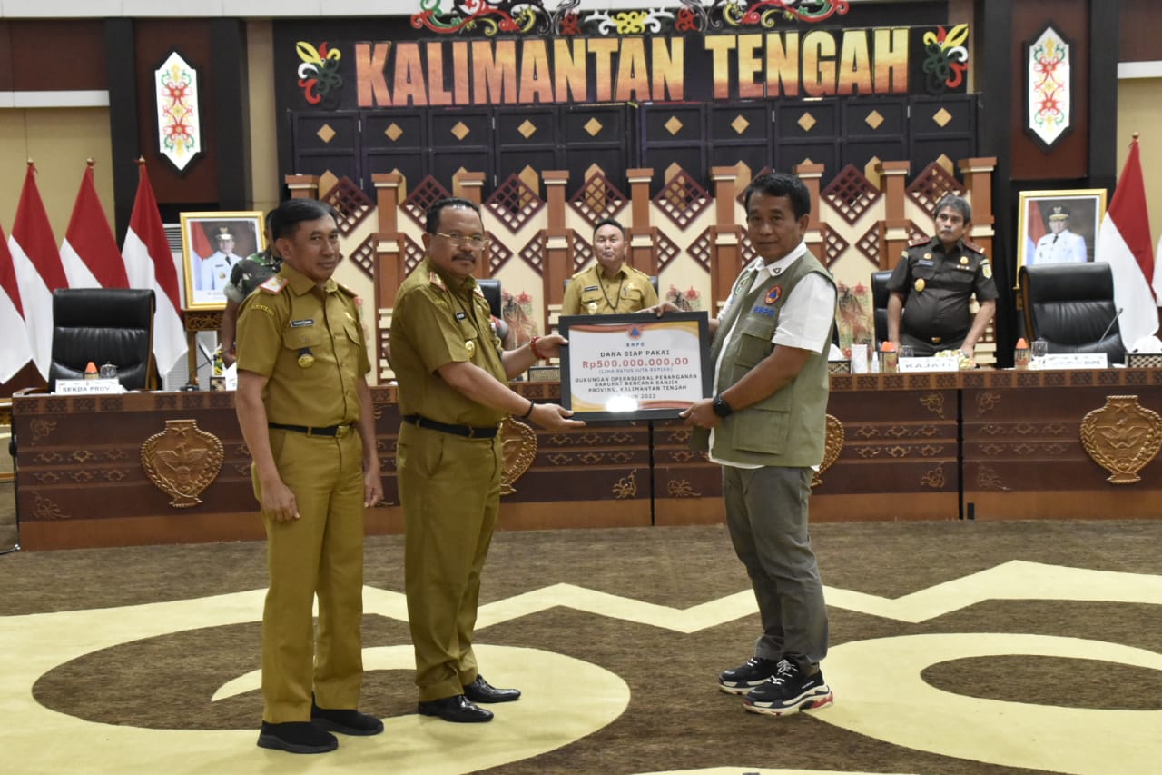 Pada kesempatan tersebut, Gubernur Sugianto Sabran menyerahkan secara simbolis bantuan untuk operasional penanganan bencana banjir di Provinsi Kalteng kepada Polda Kalteng dan Korem 102/Pjg masing-masing satu milyar rupiah. Selain itu juga dilaksanakan penyerahan secara simbolis dana siap pakai sebesar 500 juta rupiah dari BNPB untuk Pemprov. Kalteng dalam penanganan banjir ini.