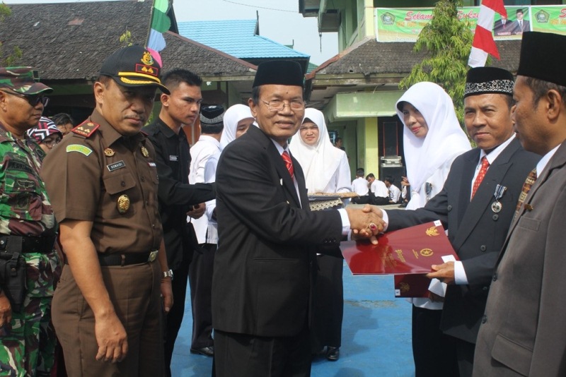 MMCKalteng – Bupati Kapuas Ben Brahim S Bahat diwakili Wakil Bupati Kapuas H M Nafiah Ibnor menjadi Inspektur Upacara pada Hari Amal Bhakti (HAB) Kementerian Agama (Kemenag) ke 73 tahun 2019 di Halaman MtsN Selat Kuala Kapuas, (3/1) pagi.
