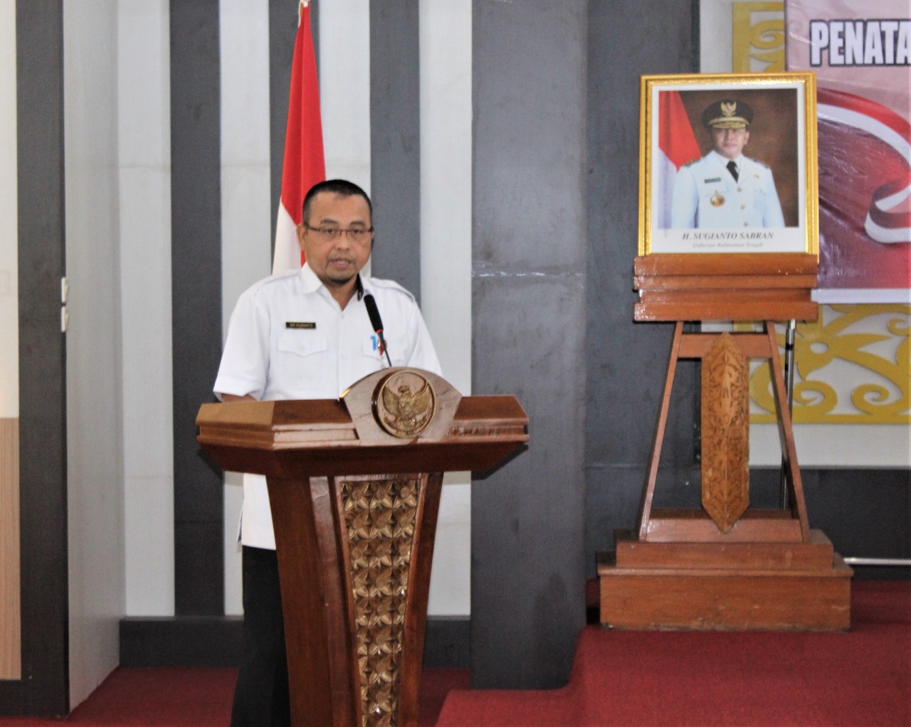 Sri Suwanto saat membacakan sambutan tertulis Gubernur Kalteng Sugianto Sabran mengajak para peserta pelatihan untuk lebih dapat memahami tugasnya dengan baik serta membiasakan konsultasi dengan pimpinan agar semua tugas berjalan dengan baik.