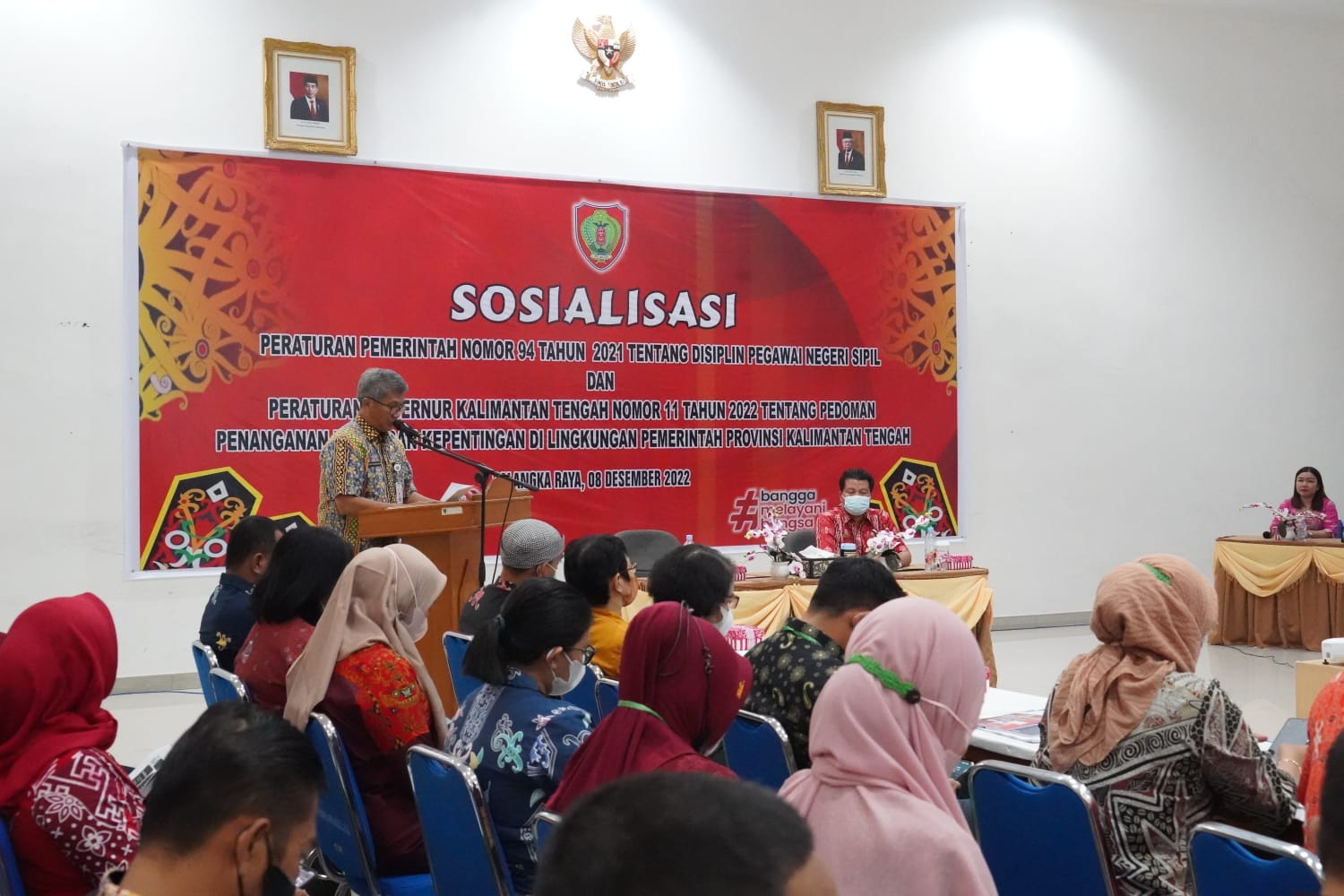 MMCKalteng – Palangka Raya – Pemprov Kalteng melalui Badan Kepegawaian Daerah (BKD) menyelenggarakan sosialisasi Peraturan Pemerintah Nomor 94 Tahun 2021 tentang Disiplin PNS dan Peraturan Gubernur Kalteng Nomor 11 Tahun 2022 tentang Pedoman Penanganan Benturan Kepentingan di Lingkungan Pemprov. Kalteng, bertempat di Aula BKD Prov. Kalteng, Kamis (8/12/2022).