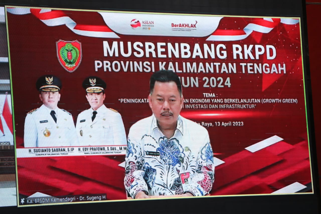 Dalam sambutannya Wagub mengatakan pembangunan Kalteng tahun 2024 mengacu pada arah kebijakan pembangunan Provinsi Kalteng yang telah ditetapkan dalam RPJMD 2021-2026, dengan tema “Peningkatan Pertumbuhan Ekonomi yang Berkelanjutan (Growth Green) Melalui Investasi dan Infrastruktur”.