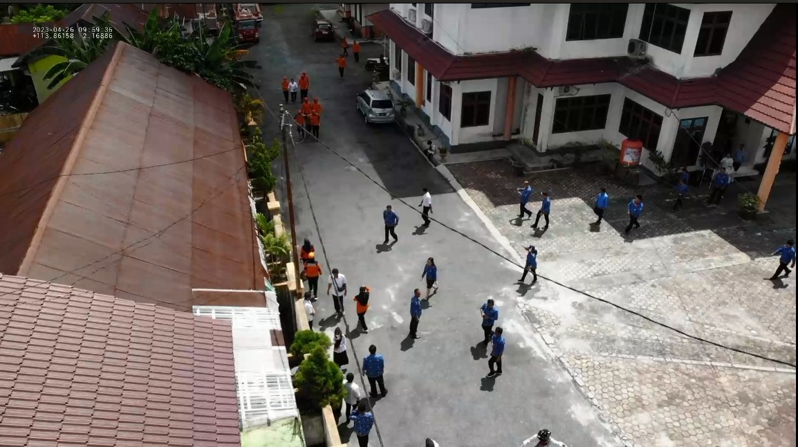Turut berpartisipasi dalam simulasi dan evakuasi, seluruh ASN, Pegawai Kontrak dan Relawan Pusdalops PB. (Hlm. 26/4/2023/DS /foto /Data: BPBPKProvKalteng)
