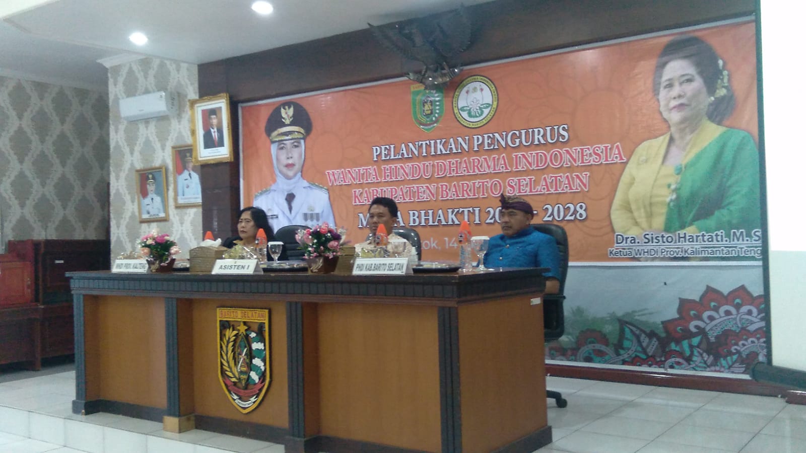 MMCKalteng - Buntok - Penjabat (Pj) Bupati Barito Selatan (Barsel) Lisda Arriyana diwakili Asisten Pemerintahan dan Kesra Sekretariat Daerah (Setda) Yoga Prasetianto Utomo hadiri acara pelantikan pengurus Wanita Hindu Dharma Indonesia (WHDI) Kabupaten Barito Selatan masa bakti 2023-2028 yang digelar di Aula Setda Kab Barsel, Minggu (14/5/2023).