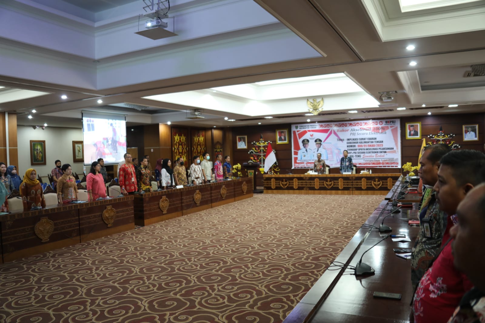 MMCKalteng – Palangka Raya - Staf Ahli Gubernur Kalimantan Tengah (Kalteng) Bidang Pemerintahan, Hukum dan Politik Herson B. Aden mewakili Sekretaris Daerah Prov. Kalteng membuka secara resmi Rapat Koordinasi (Rakor) Akselerasi 100% Pengadaan Barang Jasa secara Elektronik. Rakor berlangsung terpusat di Aula Eka Hapakat Lt. III Kantor Gubernur Kalteng, Kamis (8/6/2023).