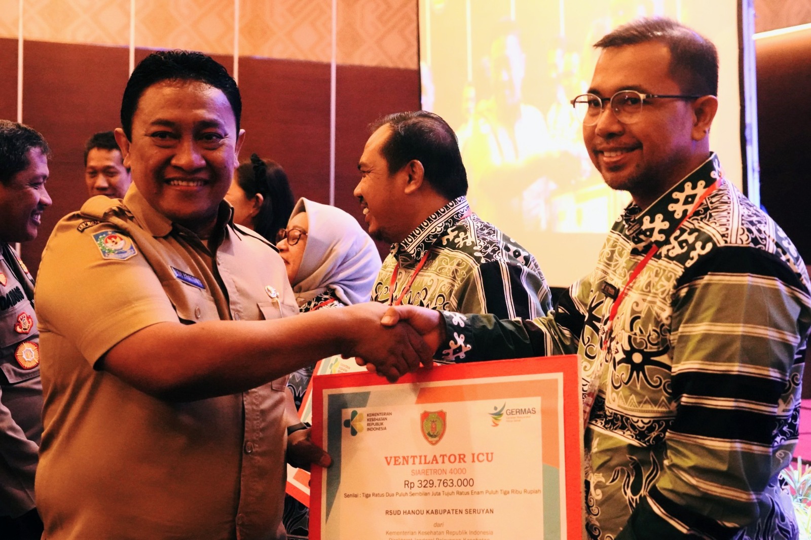 Pada kesempatan tersebut, dilakukan penyerahan alat kesehatan Berupa Ventilator ICU untuk 12 Rumah Sakit di Prov. Kalteng dari Ditjen Pelayanan Kesehatan.