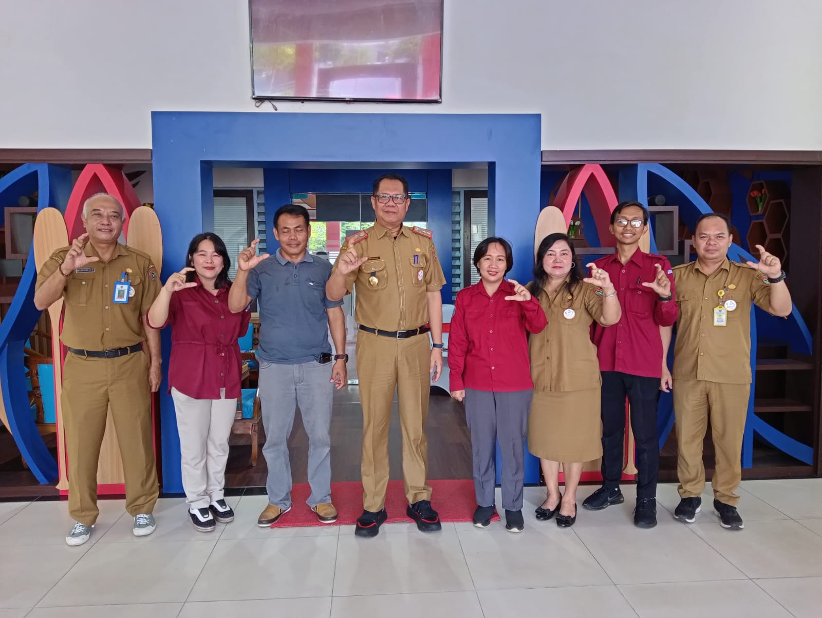 MMCKalteng – Palangka Raya – Kepala Dinas Kelautan dan Perikanan (Dislutkan) Prov. Kalteng Darliansjah didampingi oleh Kepala Bidang Budidaya, Pengolahan dan Pemasaran Sugeng Kaspani dan JFT Analis Pasar Hasil Perikanan Silvia Irmayuti menerima kunjungan Pelaku Usaha PT. Bakut 99 Ali Giono dan Perwakilan Penyuluh Dinas Perikanan Kota Palangka Raya, Selasa (11/7/2023).