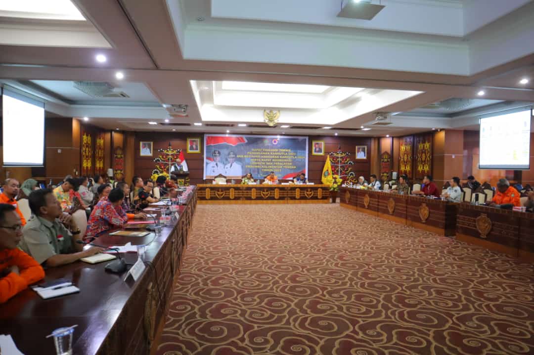 Dalam laporannya, Plt. Kepala Pelaksana BPBPK Prov. Kaltreng Ahmad Toyib menyampaikan bahwa Rakor ini dilaksanakan sebagai tindak lanjut SK Gubernur Kalteng Nomor 188.44/211/2023 tentang Status Siaga Darurat Bencana Kebakaran Hutan dan Lahan di Wilayah Provinsi Kalimantan Tengah Tahun 2023 terhitung mulai tanggal 29 Mei 2023 sampai dengan tanggal 10 November 2023. Penetapan status siaga darurat karhutla Prov. Kalteng didasarkan pada penetapan status siaga darurat Kab/Kota, dimana sampai dengan saat ini Kab/Kota yang sudah menetapkan Status Siaga Darurat Bencana Karhutla yaitu Kabupaten Sukamara sejak 26 April s.d 24 Juli 2023, Lamandau 29 Mei s.d 27 Agustus 2023), Kota Palangka Raya 08 Mei s.d 05 Agustus 2023, Barito Selatan 02 Mei s.d 14 November 2023, Pulang Pisau 29 Mei s.d 26 Agustus 2023, Kotawaringin Timur 24 Mei s.d 22 Juni 2023, Kapuas 17 Mei s.d 15 Agustus 2023, Kotawaringin Barat 30 Mei s.d 10 November 2023, Katingan 31 Mei s.d 28 Agustus 2023, Murung Raya 10 Juni s.d 08 Agustus 2023, Seruyan 26 Juni s.d 23 Oktober 2023.