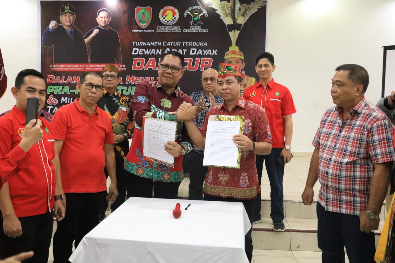 MMCKalteng – Palangka Raya – Dalam rangka hari ulang tahun Dewan Adat Dayak (DAD) Prov. Kalteng ke-16 serta milad Ketua Dewan Adat Dayak (DAD) Prov. Kalteng sekaligus Anggota DPR RI dan juga Ketua Harian Pengurus Besar PERCASI, Kepala Dinas Pemuda dan Olahraga (Dispora) Prov. Kalteng Hamka membuka secara resmi Turnamen Catur Dewan Adat Dayak (DAD) Cup Tahun 2023, bertempat di Hotel Dandang Tingang, Palangka Raya, Sabtu (19/8/2023) malam.