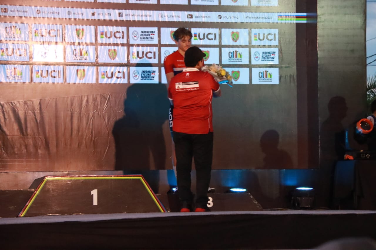 Tampak menyerahkan medali kepada para pemenang yakni CEO City Mountain Bike Kristof Bruyneel dan Ketua Harian ISSI Kalteng yang juga Ketua Panitia UCI MTB kali ini Rahmat Nasution Hamka. Turut hadir dalam penyerahan diantaranya Sekjen PB ISSI Parama Nugroho, Unsur Forkopimda Prov. Kalteng, Sekretaris Daerah Prov. Kalteng H. Nuryakin serta Kepala Perangkat Daerah dan Instansi Vertikal di lingkup Prov. Kalteng.(WDY/Foto:Asef)