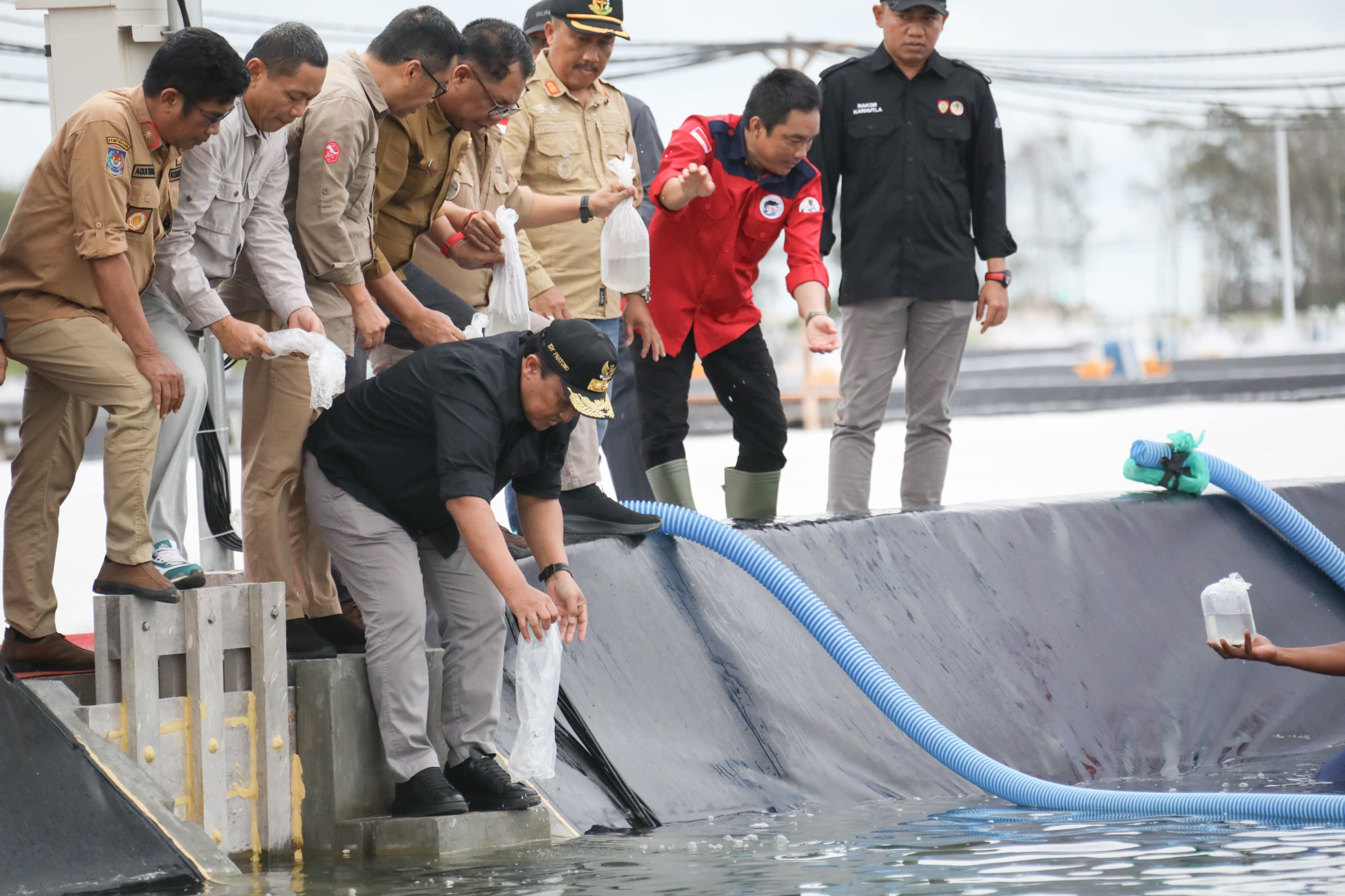 Wakil Gubernur Kalteng Edy Pratowo Lakukan Tebar Perdana Benur Udang Vaname di Kawasan Tambak Udang/Shrimp Estate BERKAH