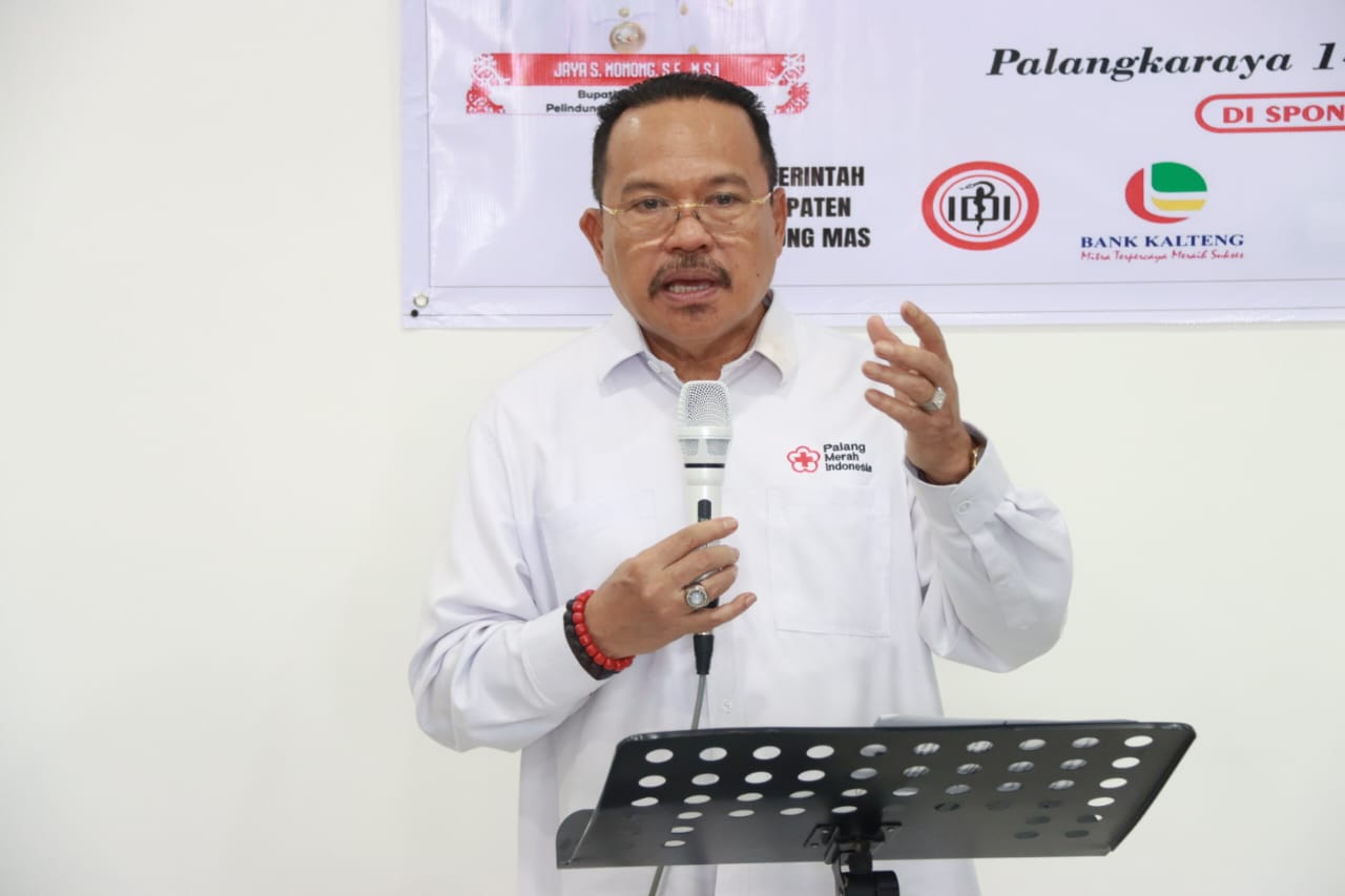 Nampak hadir Wakil Bupati Gunung Mas Efrensia L. P Umbing yang juga selaku Ketua PMI Kabupaten Gunung Mas, Staf Ahli Gubernur Kalteng Bidang KSDM Suhaemi, Kepala Perangkat Daerah Kabupaten Gunung Mas terkait, Pimpinan Divisi Corporate Secretary PT. Bank Kalteng Rahmawati, Pimpinan Cabang Bank Kalteng Kuala Kurun/mewakili, dan Ketua GAPKI Cabang Kalteng/mewakili. (Rkh/Foto:Asep)