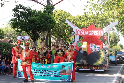 Pada kegiatan kali ini, Dinas Perdagangan dan Perindustrian membawa tim karnaval bersama mobil hias berbentuk burung tingang sedang terbang diapit dengan 2 (dua) talawang yang merupakan perwujudan dari lambang kewaspadaan dan ketahanan masyarakat suku Dayak. Dalam kehidupan selalu ada tekanan kepentingan dan kebutuhan yang tidak terprediksi baik itu dari segi ekonomi, pendidikan dan kesehatan sehingga penting untuk selalu mempersiapkan "antisipasi“.