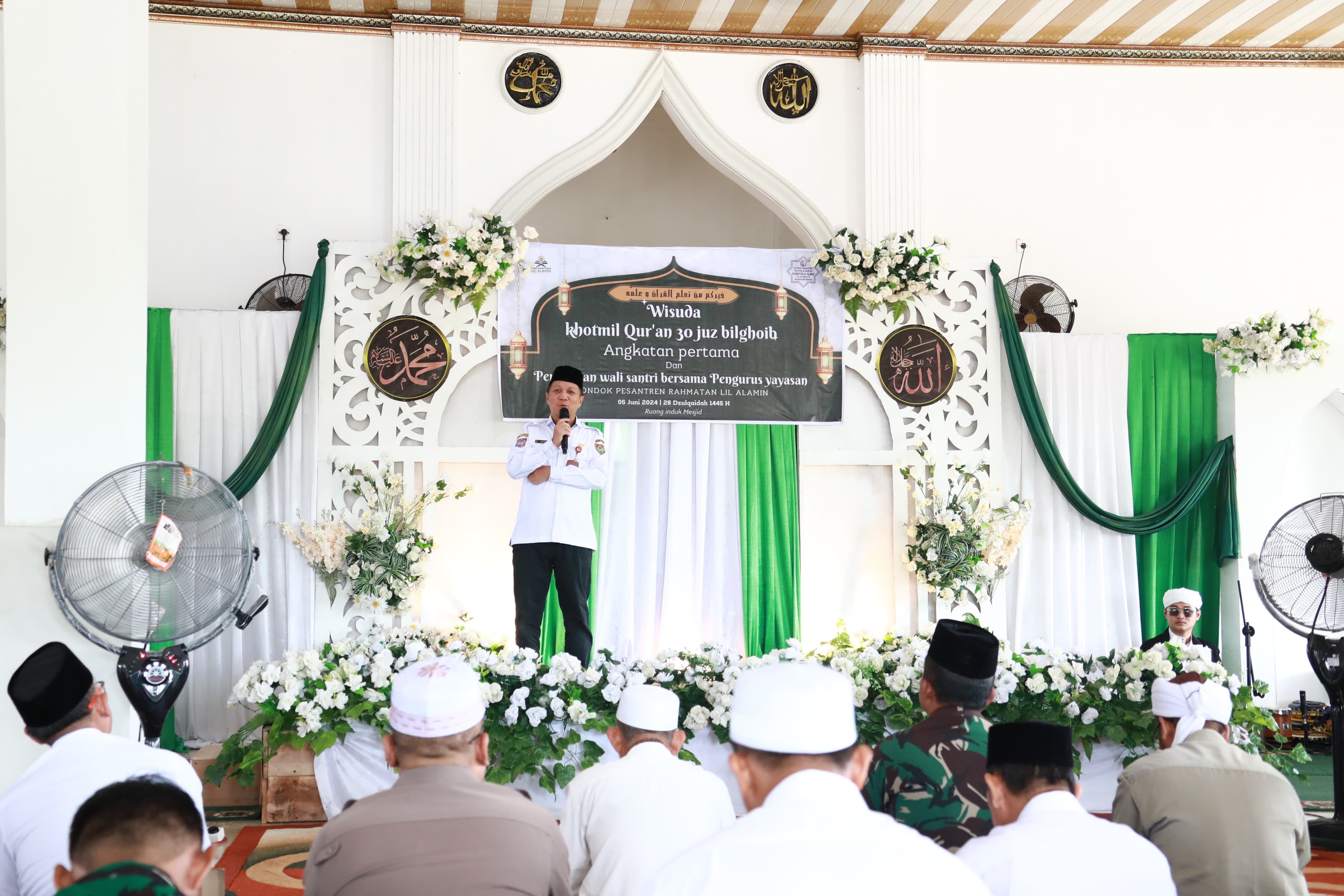 MMCKalteng - Palangka Raya - Staf Ahli (Sahli) Gubernur Kalteng Bidang Kemasyarakatan dan Sumber Daya Manusia (KSDM) Suhaemi mewakili Sekretaris Daerah Prov. Kalteng menghadiri Wisuda Khotmil Al Quran 30 Juz Bilghoib, bertempat di Pondok Pesantren Rahmatan Lil Alamin, Jl. Bandara Utomo I, Palangka Raya, Rabu (5/6/2024). Sahli KSDM Suhaemi dalam sambutannya menghaturkan terima kasih atas semangat dan dedikasi para santri mencintai Al-Quran.