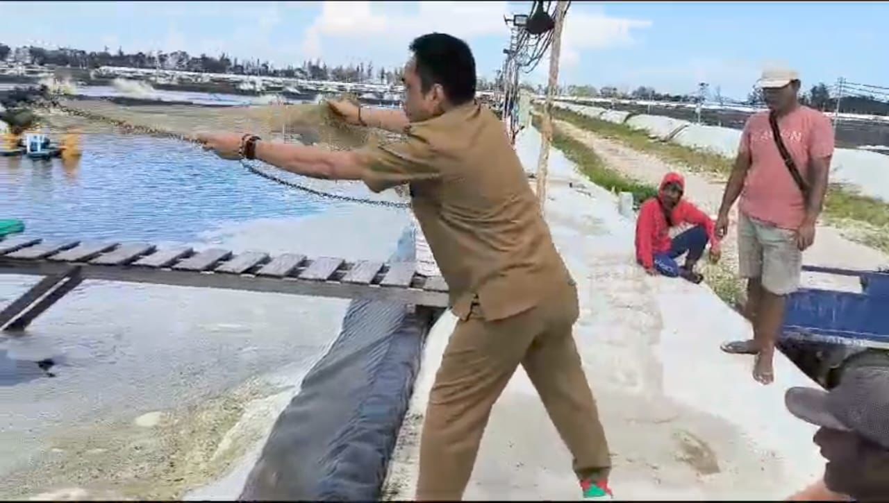 Turut hadir Kepala BLUD Shrimp Estate David Haryanto, Manajer Farm Shrimp Estate Wahyu Martha Lukyanto, dan Koordinator Tim Teknis Shrimp Estate Sikmon.