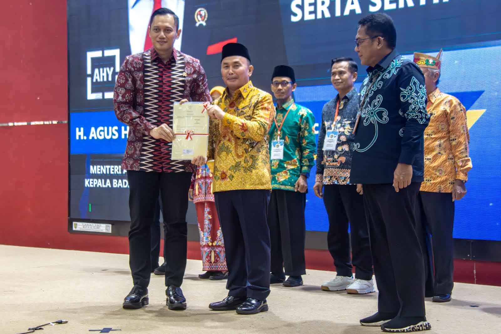 Didampingi Gubernur Kalteng, Menteri ATR/BPN Agus Harimurti Yudhoyono Serahkan Sertipikat Hak Atas Tanah Elektronik