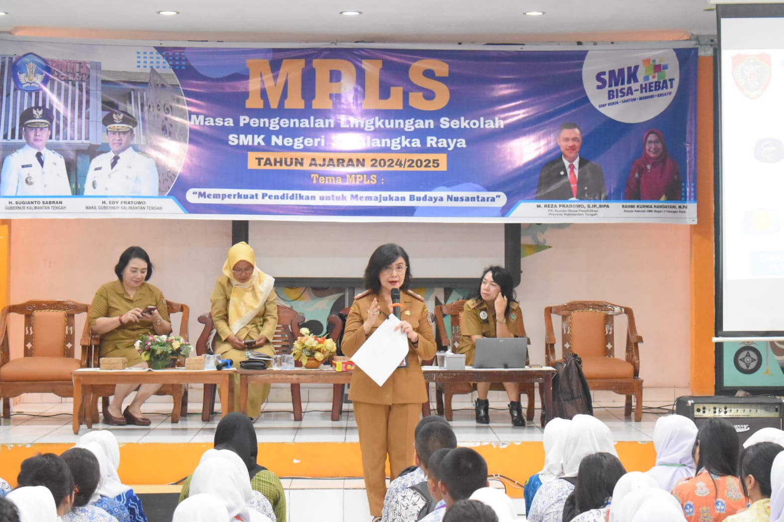 MMCKalteng - Palangka Raya - Kepala Dinas Pemberdayaan Perempuan, Perlindungan Anak, Pengendalian Penduduk dan Keluarga Berencana (DP3APPKB) Prov. Kalteng Linae Victoria Aden menjadi Narasumber pada kegiatan Masa Pengenalan Lingkungan Sekolah (MPLS), di Aula SMK Negeri 3 Palangka Raya, Selasa (9/7/2024). Acara ini dibuka secara langsung oleh Kepala Sekolah SMK Negeri 3 Palangka Raya.