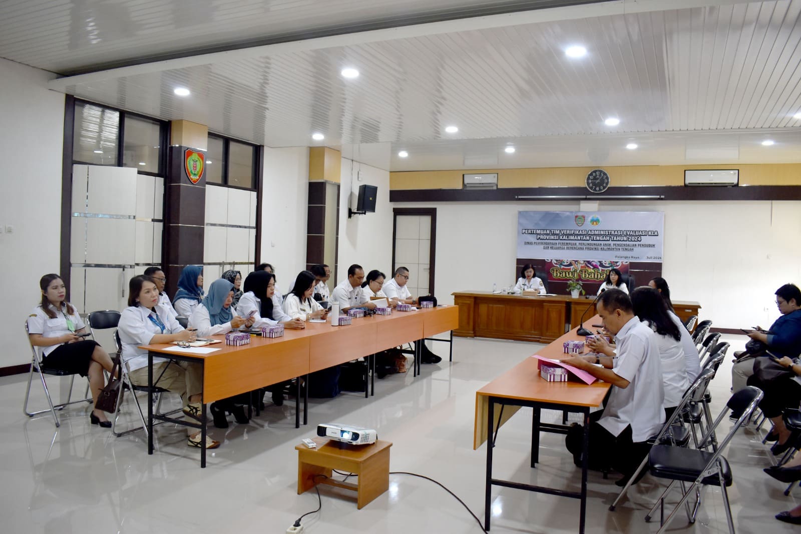 MMCKalteng - Palangka Raya - Dinas Pemberdayaan Perempuan, Perlindungan Anak, Pengendalian Penduduk dan Keluarga Berencana (DP3APPKB) Prov. Kalteng melaksanakan kegiatan Pertemuan Tim Verifikasi Administrasi Evaluasi KLA (Kota/Kabupaten Layak Anak) Provinsi Kalimantan Tengah Tahun 2024, di Aula Bawi Bahalap Dinas P3APPKB Provinsi Kalimantan Tengah, Rabu (31/7/2024). Kegiatan ini dibuka langsung oleh Kepala DP3APPKB Prov. Kalteng, Linae Victoria Aden.