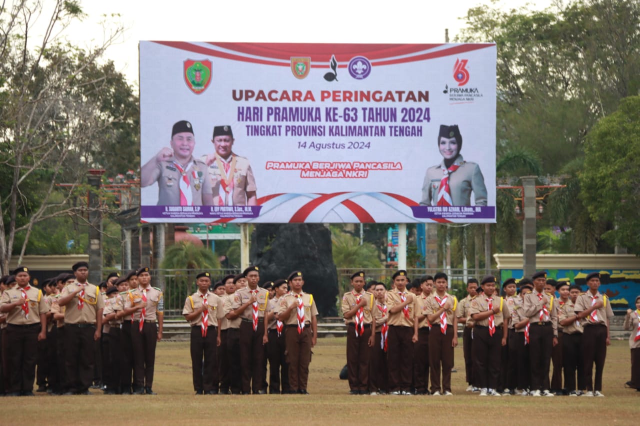 MMCKalteng – Palangka Raya – Ketua Kwartir Daerah Gerakan Pramuka Prov Kalteng Ivo Sugianto Sabran pimpin Upacara Peringatan Hari Pramuka Ke-63 Tingkat Prov. Kalteng Tahun 2024, di Halaman Kantor Gubernur Kalteng, Rabu (14/8/2024).