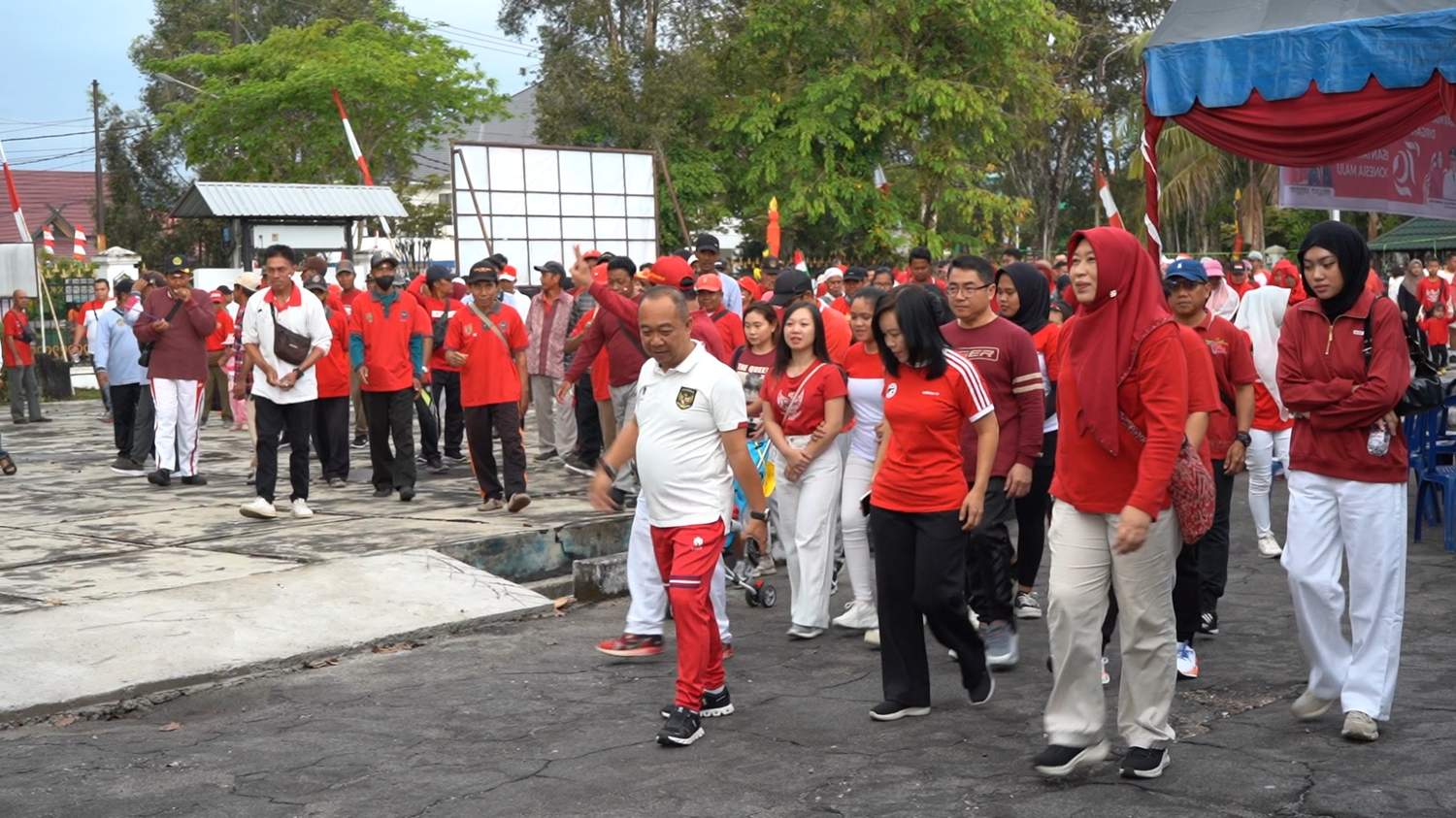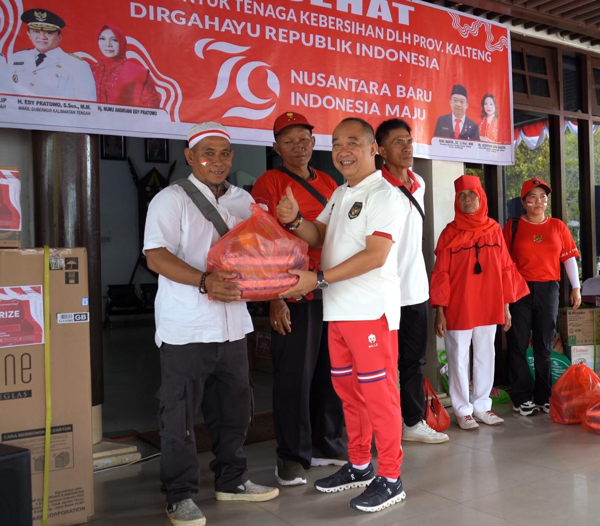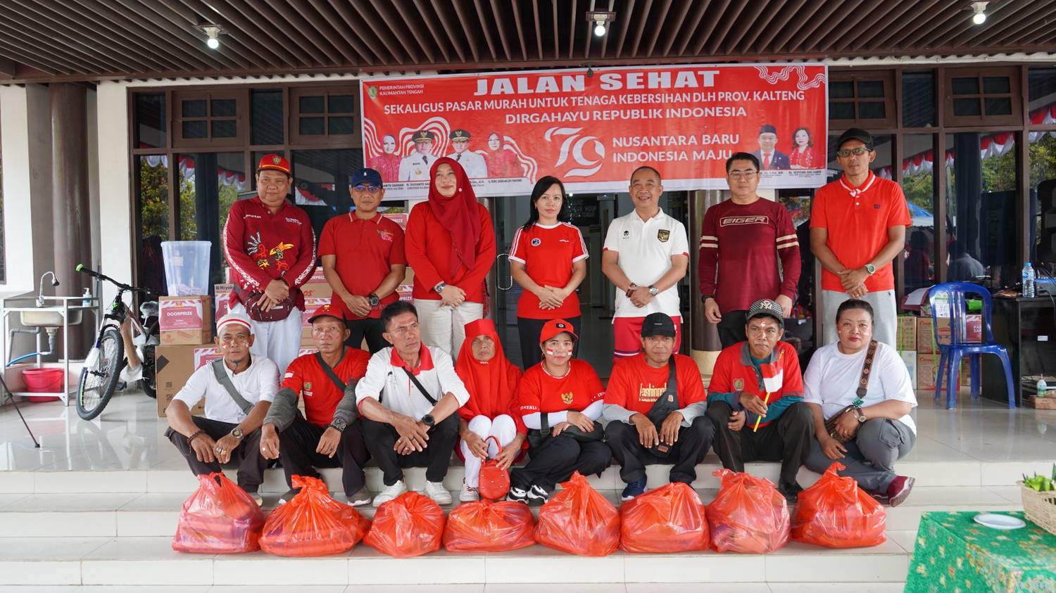MMCKalteng - Palangka Raya – Dalam rangka memperingati HUT RI Ke-79, Dinas Lingkungan Hidup (DLH) Prov. Kalteng menyelenggarakan Pasar Murah untuk tenaga kebersihan Op persampahan dan Jalan Sehat untuk seluruh pegawai Dinas Lingkungan Hidup Prov. Kalteng beserta keluarga, di Halaman Kantor Dinas Lingkungan Hidup Prov. Kalteng, Jl. Williem A.S No.08, Palangka Raya, Minggu pagi (18/8/2024).