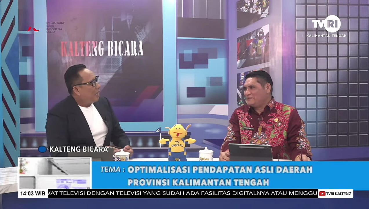 MMCKalteng – Palangka Raya – Kepala Badan Pendapatan Daerah (Bapenda) Provinsi Kalimantan Tengah Anang Dirjo menjadi narasumber dalam siaran live streaming Dialog Interaktif Kalteng Bicara TVRI Kalteng, bertempat di Kantor LPP TVRI Kalimantan Tengah, Palangka Raya, Rabu (21/8/2024). Dialog Interaktif tersebut mengangkat tema Optimalisasi Pendapatan Asli Daerah (PAD) Provinsi Kalimantan Tengah.