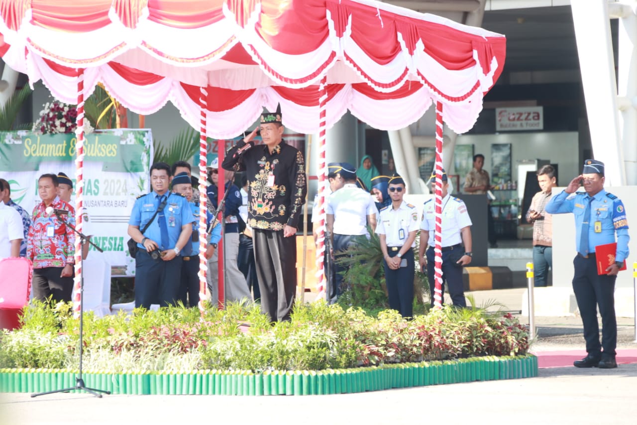 MMCKalteng – Palangka Raya – Dalam rangka memperingati Hari Perhubungan Nasional (Harhubnas) Tahun 2024, Pemprov Kalteng melalui Dinas Perhubungan melaksanakan upacara, di Halaman Terminal Bandara Tjilik Riwut Palangka Raya, Kamis (19/9/2024). Upacara dipimpin oleh Staf Ahli (Sahli) Gubernur Bidang Ekonomi, Keuangan dan Pembangunan Yuas Elko.