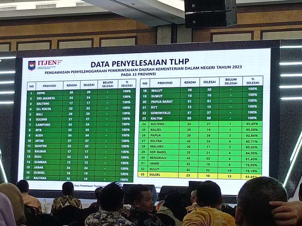 "Terhadap progres capaian penyelesaian Tindak Lanjut Hasil Pengawasan (TLHP) Inspektorat Jenderal Kemendagri RI, saya mengapresiasi kerja sama dari semua perangkat daerah terkait di lingkup pemerintah Provinsi Kalimantan Tengah yang telah menyelesaikan Rekomendasi Hasil Pengawasan dan Pengaduan Masyarakat dengan persentase penyelesaian 100%. Namun demikian, masih terdapat beberapa Rekomendasi TLHP Inspektorat Jenderal dari Kementerian Teknis lainnya yang menjadi perhatian untuk segera diselesaikan," tandasnya. (INSP)